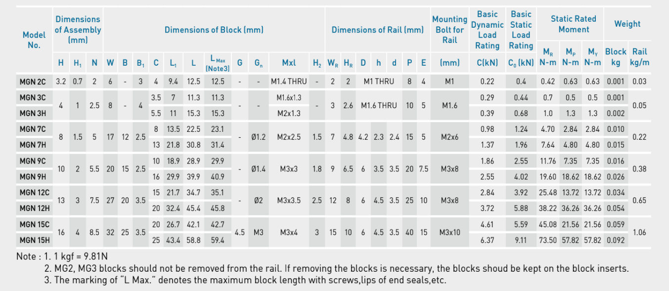 Con trượt Hiwin MGN9C, MGN12C, MGN15C