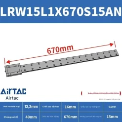 Thông số kỹ thuật của ray dẫn hướng LRW15 đảm bảo hiệu suất ổn định trong các ứng dụng yêu cầu độ chính xác cao và không gian hạn chế.