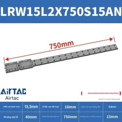 Ray trượt tuyến tính mini bản rộng LRW15L2X750S15AN