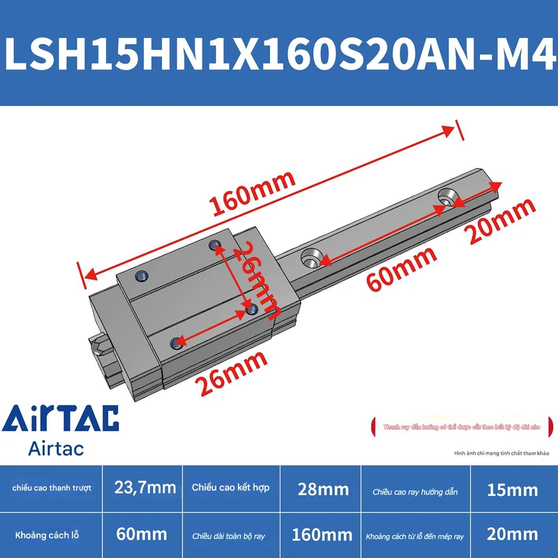 Ray trượt vuông tiêu chuẩn LSH15HN1X160S20AN-M4